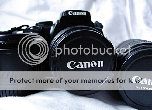 Canon EOS 400D and three - yes, three! - lenses. The 50mm f/1.8 on the left that I already had, the 18-55mm f/3.5-5.6 II on the camera, which came with it, and a Canon 75-300mm f/4-5.6 III USM on the right, which I bought separately but it arrived the same day as the camera.